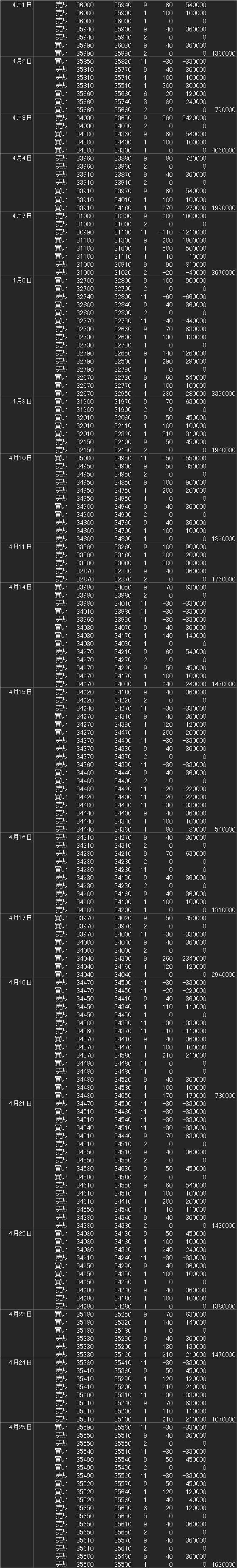 | 225先物 成績 2025年4月 |