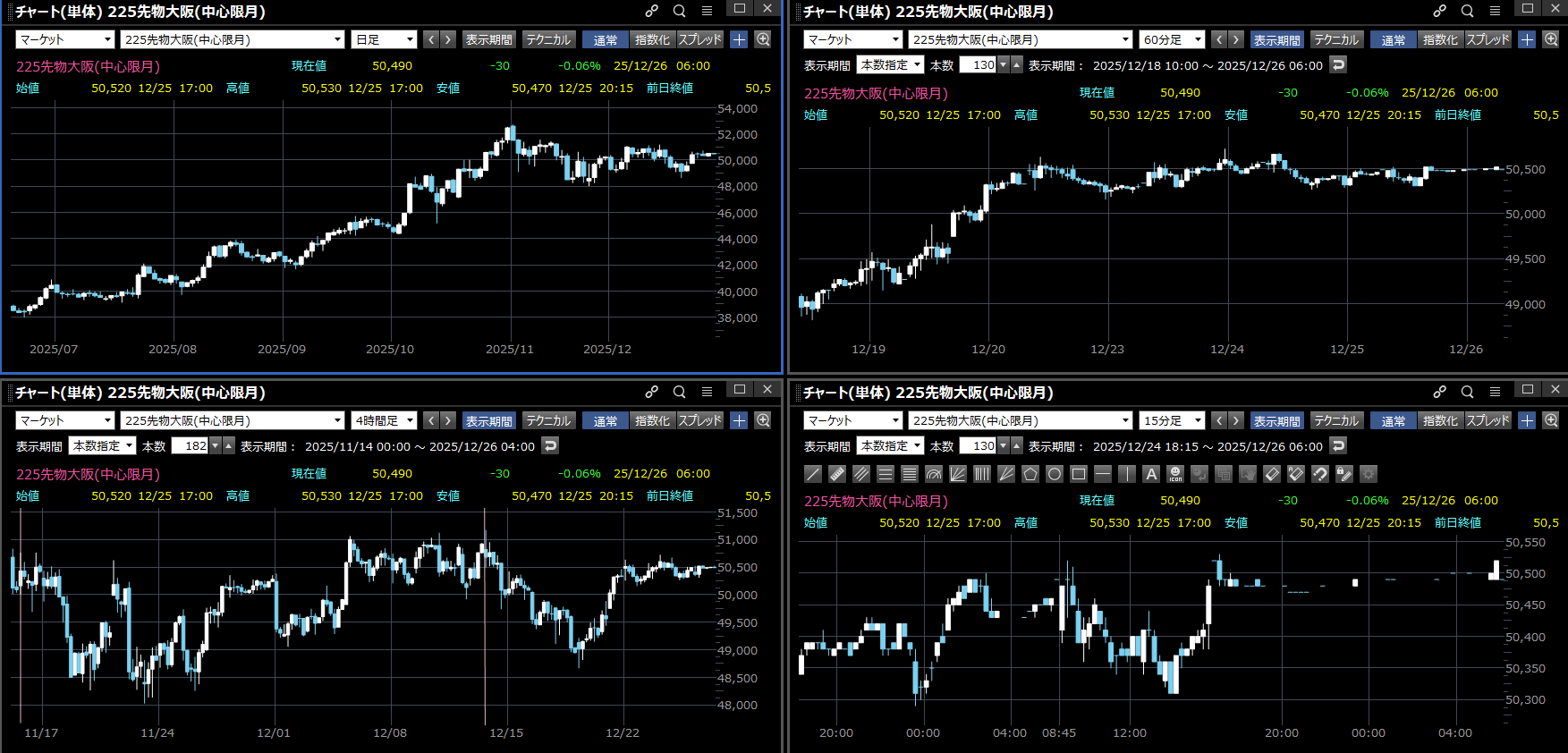 日中引け間際に強引な戻しが入り、そしてナイトは見事な横移動となっおります。