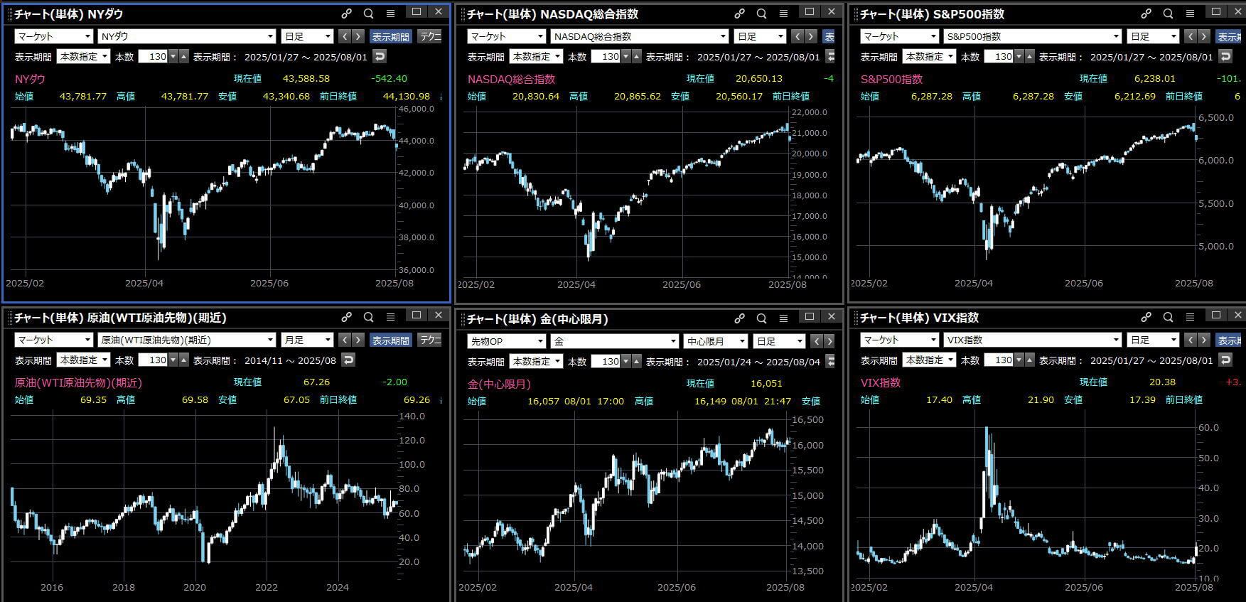 トランプ大統領が前日に多くの貿易相手国・地域に対する相互関税を課す大統領令に署名したことのほか、朝方発表された7月の米雇用統計で労働市場の減速が示唆されたことで売り圧力が高まった。アマゾン・ドット・コムの売りがかさんだことも重石になった。