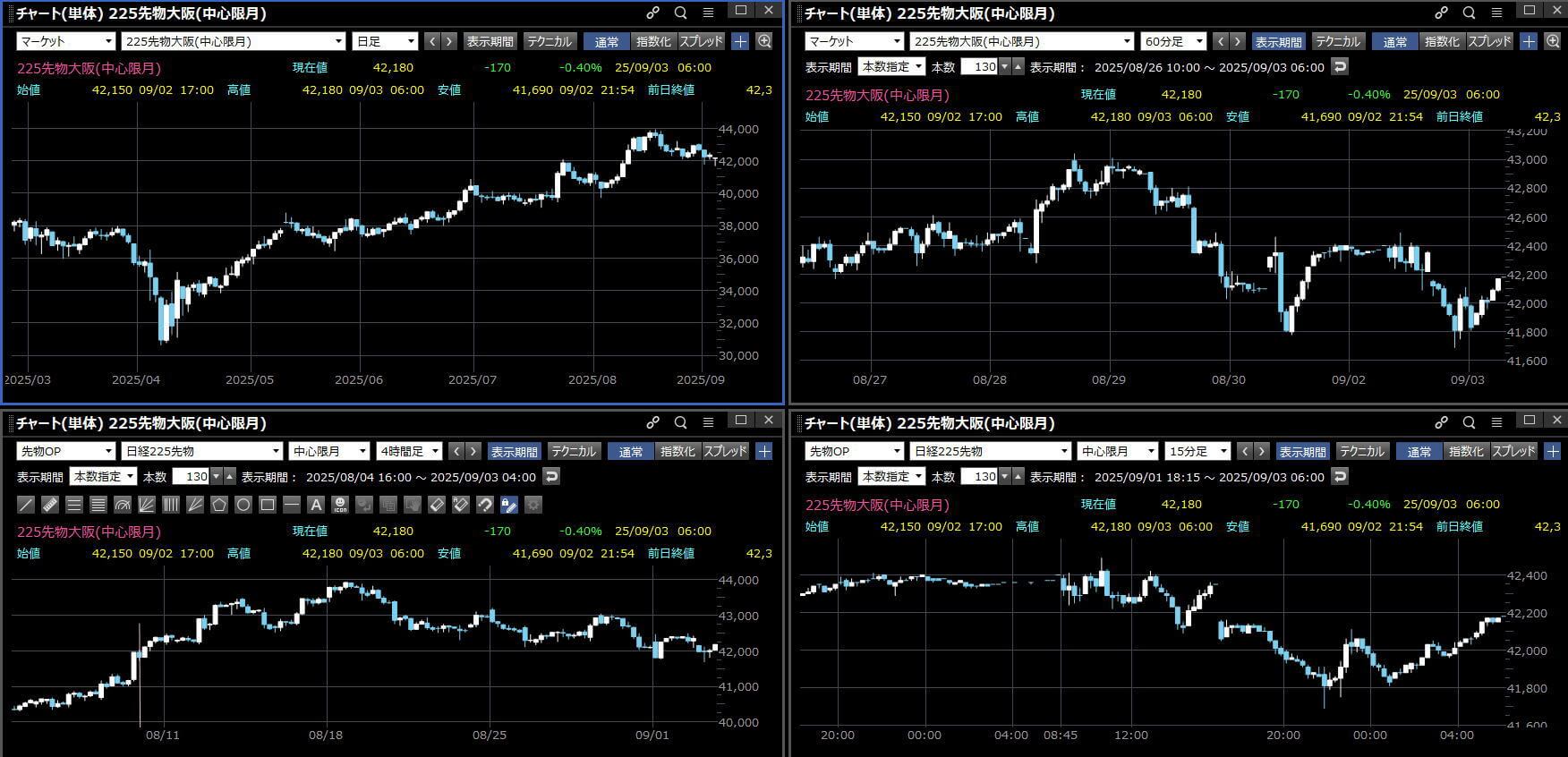 米市場の影響が大きい状況に加え、9月のメジャーSQへの攻防が重なって市場の動きは強くなってきています。