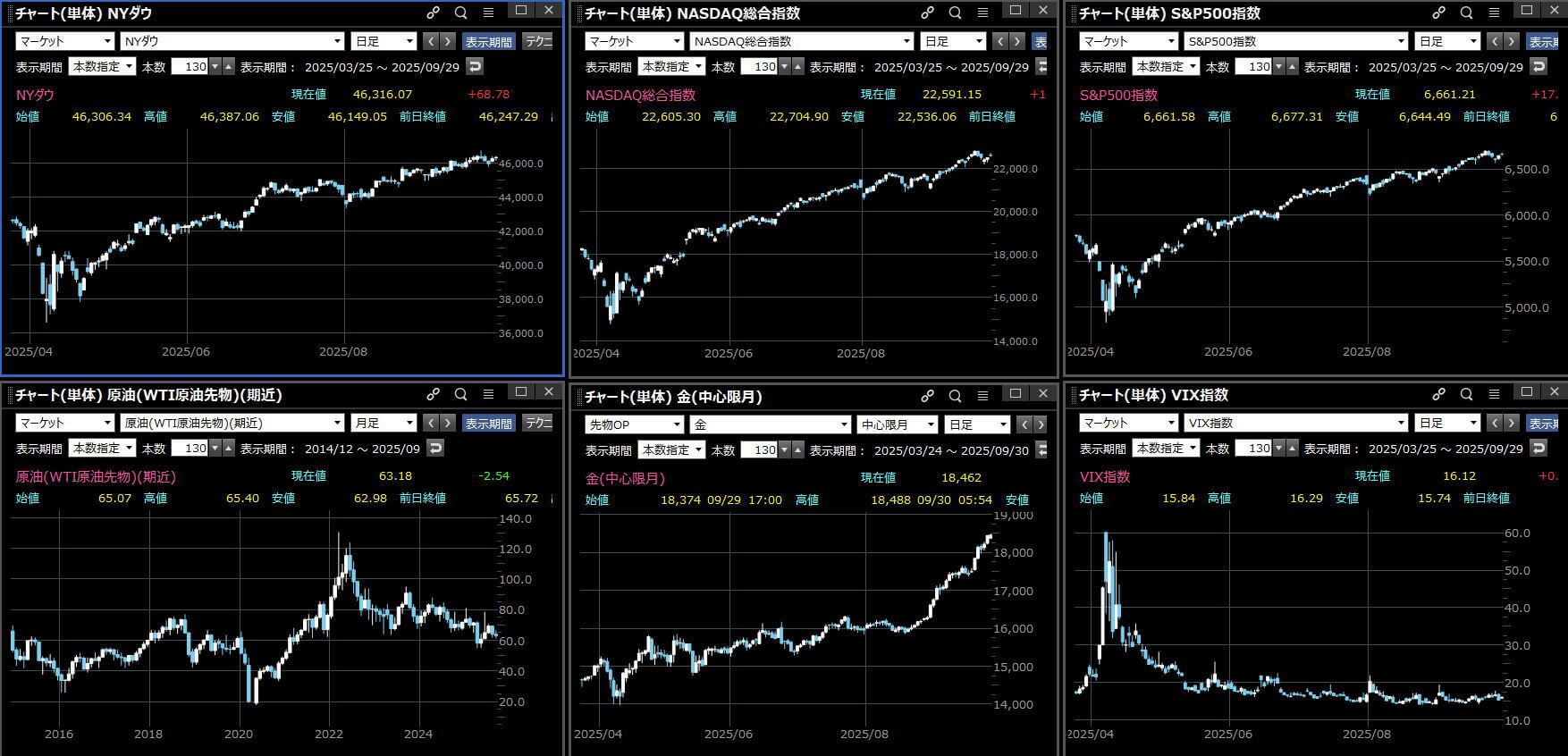 引け時点の方向は無し。今日9月最終日です。