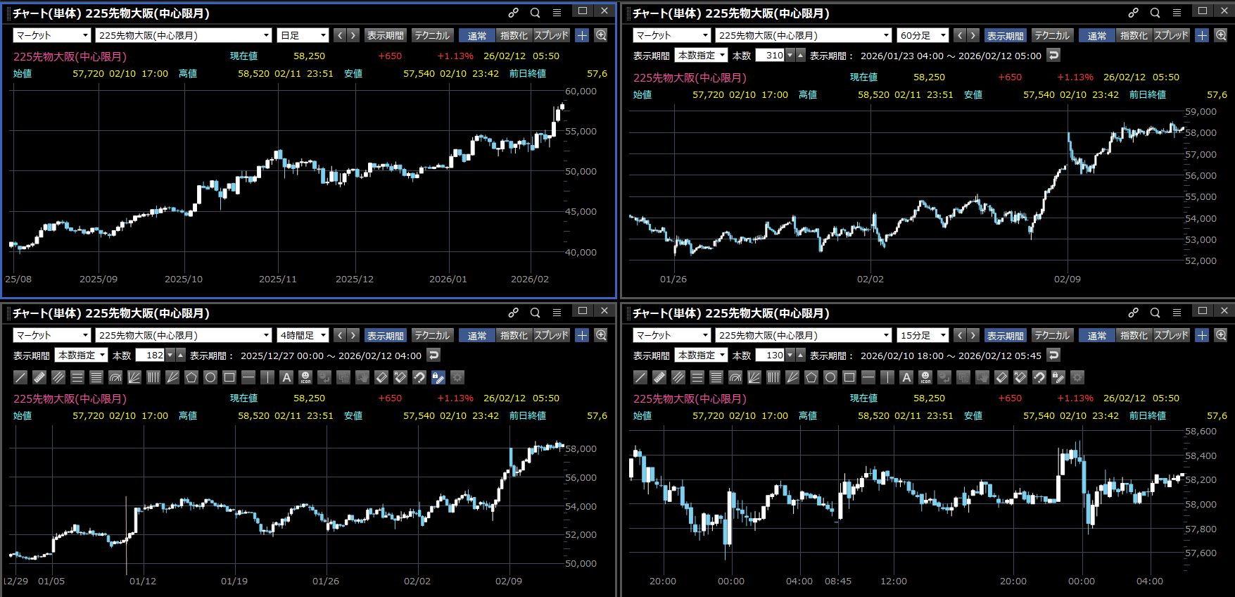 直近では2/6の53000円まで突っ込んだところからの急上昇が印象的でした。
