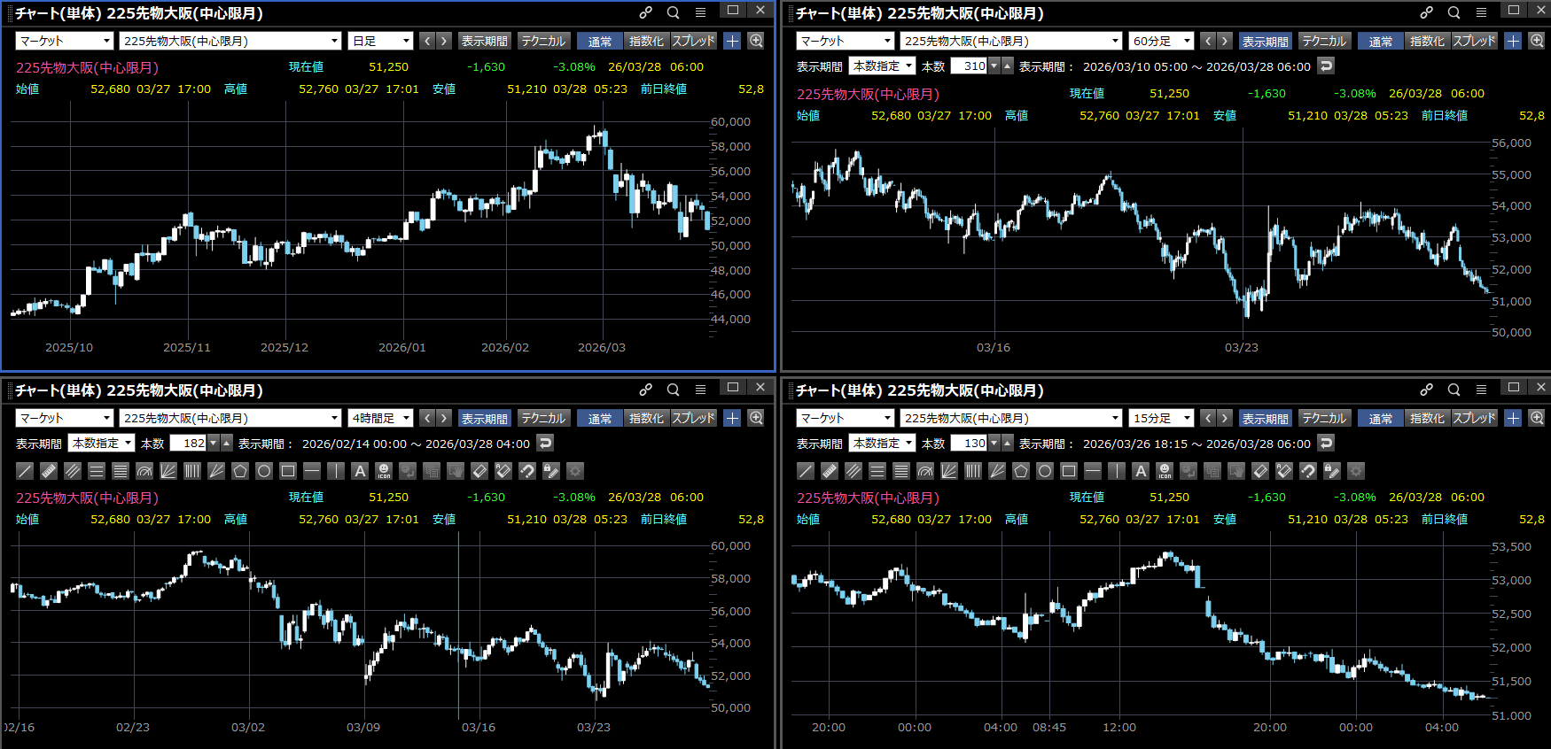 それに伴って225先物は51250円の安値引けとなりました。