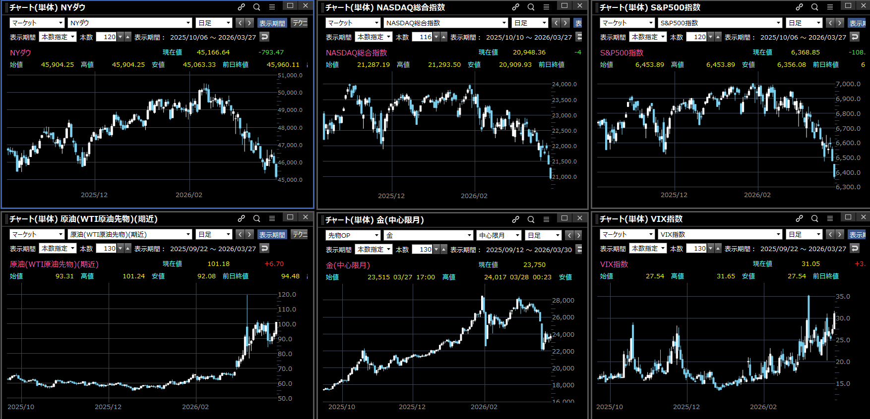 恐怖指数(VIX):3.61pt上昇。市場の不安心理が一段と悪化。