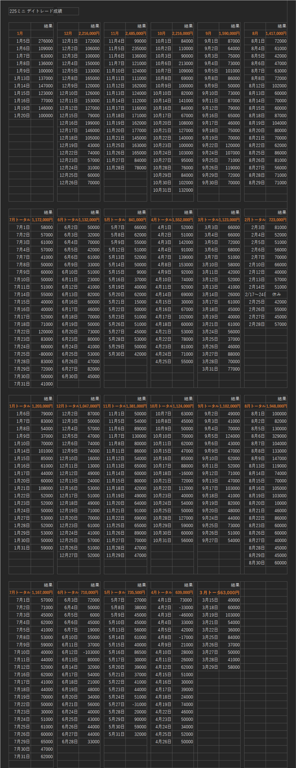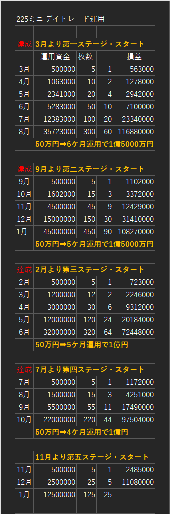【5ヶ月目】 同様に利益を載せてミニ100枚またはラージ10枚でトレード