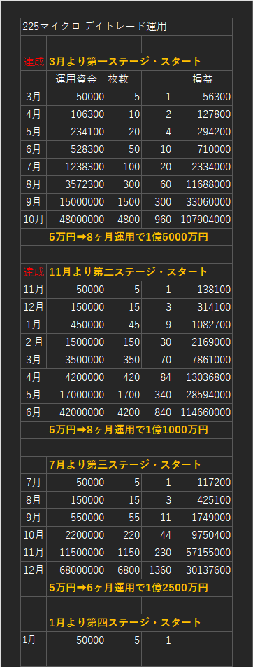 【9ヶ月目】 225マイクロスタートは資金が1億5000万円になりました。